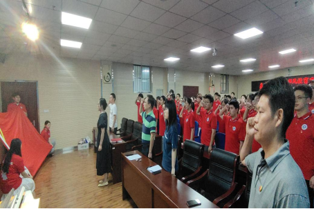 激昂的歌声过后,彭圣威同志宣布新党员名单,夏梦同志带领全体新党员面向党旗庄严宣誓,许下为共产主义奋斗终生的铮铮誓言。