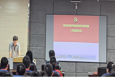 新党员代表周述桥自豪的说到:“今天是我找到方向的日子”,我将以实际行动践行入党初心,发扬党的优良传统,牢记全心全意为人民服务的宗旨,对党忠诚、勤劳学习、积极向上、埋头苦干,不断增强医学本领,到祖国和人民最需要我的地方去发光发热。”