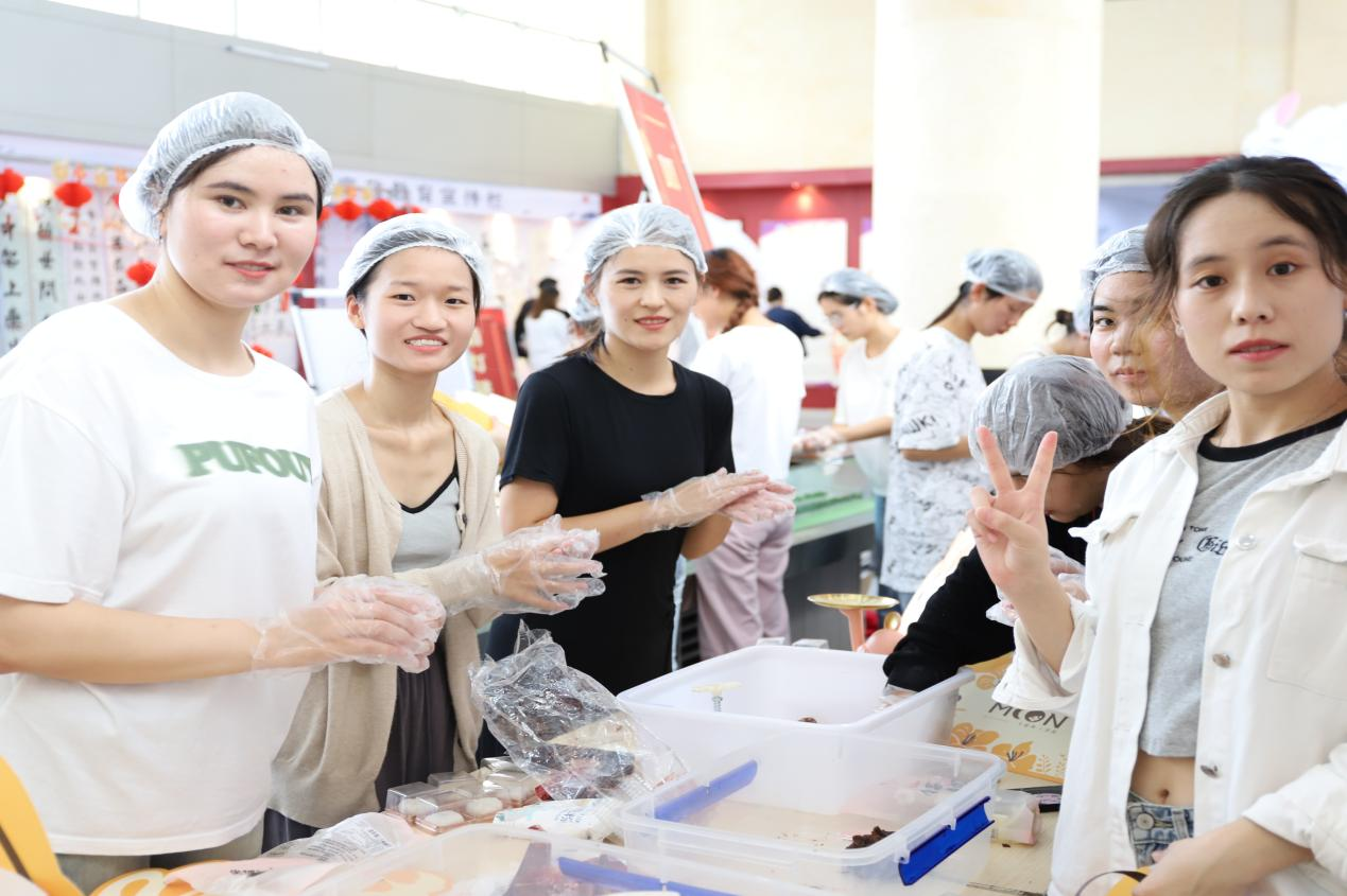 9月24日,公司各族师生在医药楼三栋二楼大厅开展素质拓展活动,大家热情满满参加冰皮月饼DIY,材料在同学们手中搅拌、揉搓、按压、成型,这团圆的期许、这思念的寄托,都化作一个个月饼,跃然指尖。领导老师们也被同学们邀请品尝手工月饼,师生相谈甚欢,为这即将到来的中秋佳节,增添了些许温馨和感动。随后各族师生共敲同心鼓,鼓声从刚开始较为生疏的一个,到逐渐上手的三个,再到团结协作的六个,成功的喜悦弥漫在“一、二、三……”的呐喊中。当音乐响起,盛装出席的维吾尔族同学献上一曲新疆舞蹈,动感的音乐、欢快的舞蹈、热情的互动,同学们跃跃欲试,老师们参与其中,把现场气氛推向高潮,本次活动使得各族师生收获满满,意犹未尽,纷纷合影留念。