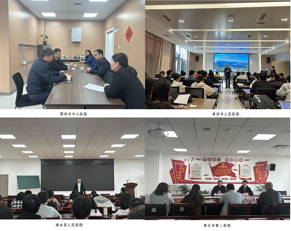 (通讯员:高亚娜 审稿人:梅武轩)为切实提高公司临床医学专业实习生教学质量, 2024年10月24日-10月25日,经理梅武轩、副经理彭圣威、教学办高亚娜一行3人先后赴黄石市第二医院、黄冈市中心医院、鄂州市中心医院、浠水县人民医院开展走访交流、看望实习生及出科考试等工作。