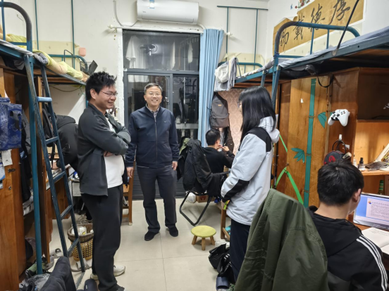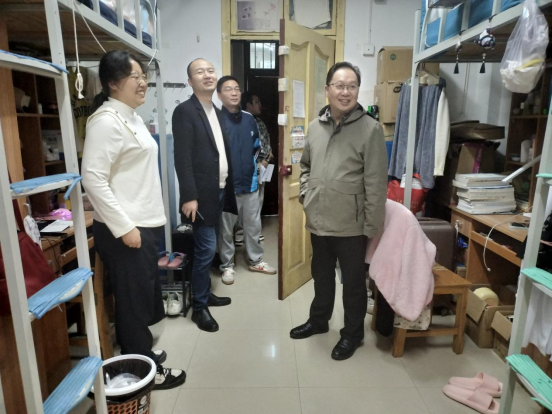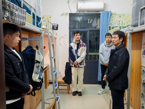 会后,院领导兵分三路,带领班导师和辅导员走访员工宿舍。当看到员工的被褥较薄,老师们反复叮嘱,防寒保暖;当听到员工的合理建议,老师们现场办公,帮忙落实;当得知员工间存在摩擦,老师们多方劝导,化解争端;当了解到员工险遭诈骗,老师们复盘全局,提醒他人……这些小而微的实事拉近了老师和员工间的距离,也让员工们敞开心扉,与老师们统一战线,共同为维护校园安全助力。