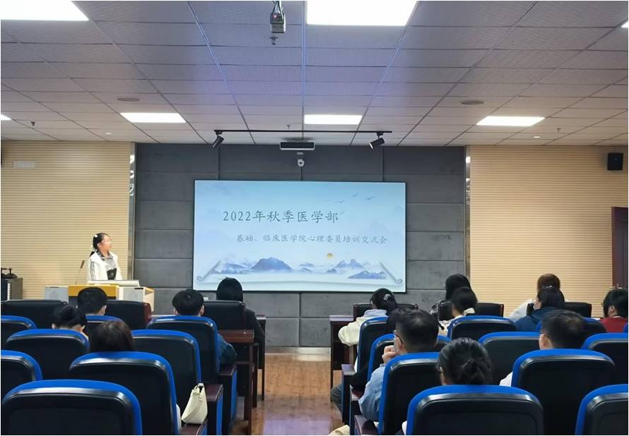 10月28日晚上,基础医公司、临床院在医药楼三栋录播室召开心理委员培训会。培训会由心理专干汪晓娟老师指导,心理部部长吴媛媛同学主持,22、21级基础、临床院各班心理委员参加培训。