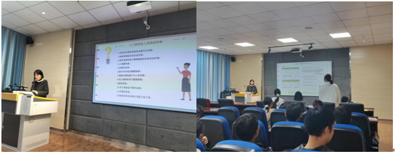 本次心理委员培训会中,汪晓娟老师注重强调了老员工心理危机的严重性,针对“12类特殊人群”介绍干预措施,并提出让各班寝室长辅助心理委员进行心理异常的排查,组建排查群。心理部部长吴媛媛同学向大家介绍心理委员的职责,如:与同学多沟通、有服务意识、协助辅导员做好相关心理工作,提出了心理委员应具有保密意识,并对心理报表的填写进行补充说明。