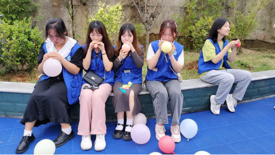 刚到达目的地,小朋友们还在睡午觉,在等待的时间里,志愿者们开始给小朋友们准备起了气球,希望给他们一个小惊喜。
