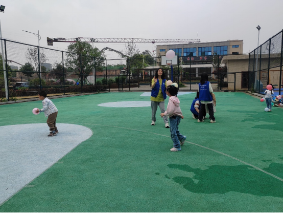 等到午休结束后,志愿者们与小朋友们相互认识,志愿者们开始带领小朋友做游戏。一部分在操场上玩耍、嬉戏,一起玩气球,相互追赶;一部分在教室里一起做手工、画画、玩玩具。小朋友们十分快乐的畅游其中,志愿者们也因为小朋友们的快乐而快乐。