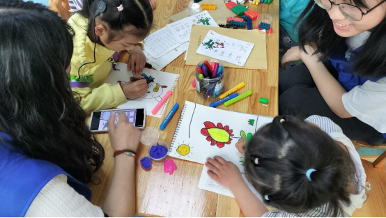 快乐的时光总是在飞逝,在分别之际,小朋友们和志愿者们都十分的不舍,相互告别。志愿者们期盼着下次能够再次来到这里,小朋友们也盼望着志愿者们的下一次到来。