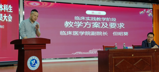 意昂体育副经理但昭葵解读临床实践教学阶段教学方案及要求。他指出,见习对于临床经验积累意义重大,不仅要将所学转化为实践能力,更要在见习过程中展现医公司学子的风采和素质。