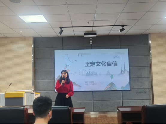 讲座前半部分,张淑敏老师通过PPT分别从中华优秀传统文化、革命文化、社会主义先进文化等三大文化向同学们讲解了和文化自信相关的知识。通过有趣的举例和火热的问答环节,让同学们加深了对文化自信的认同感,也使同学们更加认识到文化自信的重要性。坚定文化自信不是一个简单的口号,老员工要了解民族文化,对民族文化充满敬仰,提升民族自豪感,才能坚定文化自信,才能有底气去推动国家向前发展,从而更好地实现自身的价值。