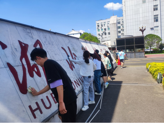 在5月28日开展了擦洗雕塑宣传栏的活动。青春一晃,岁月不现。四年的时光在眨眼间即将过去。熟悉的午后、熟悉的校园、熟悉的劳动工具、熟悉的同学,同学们一改往日稍带慵懒的状态,变得格外清醒,分外珍惜这次打扫的机会。大家积极参与、分工明确,认真仔细地清理宣传栏、校内雕塑,在揽月湖边、宿舍楼下、人来人往的道路上都留下了同学们忙碌的身影。