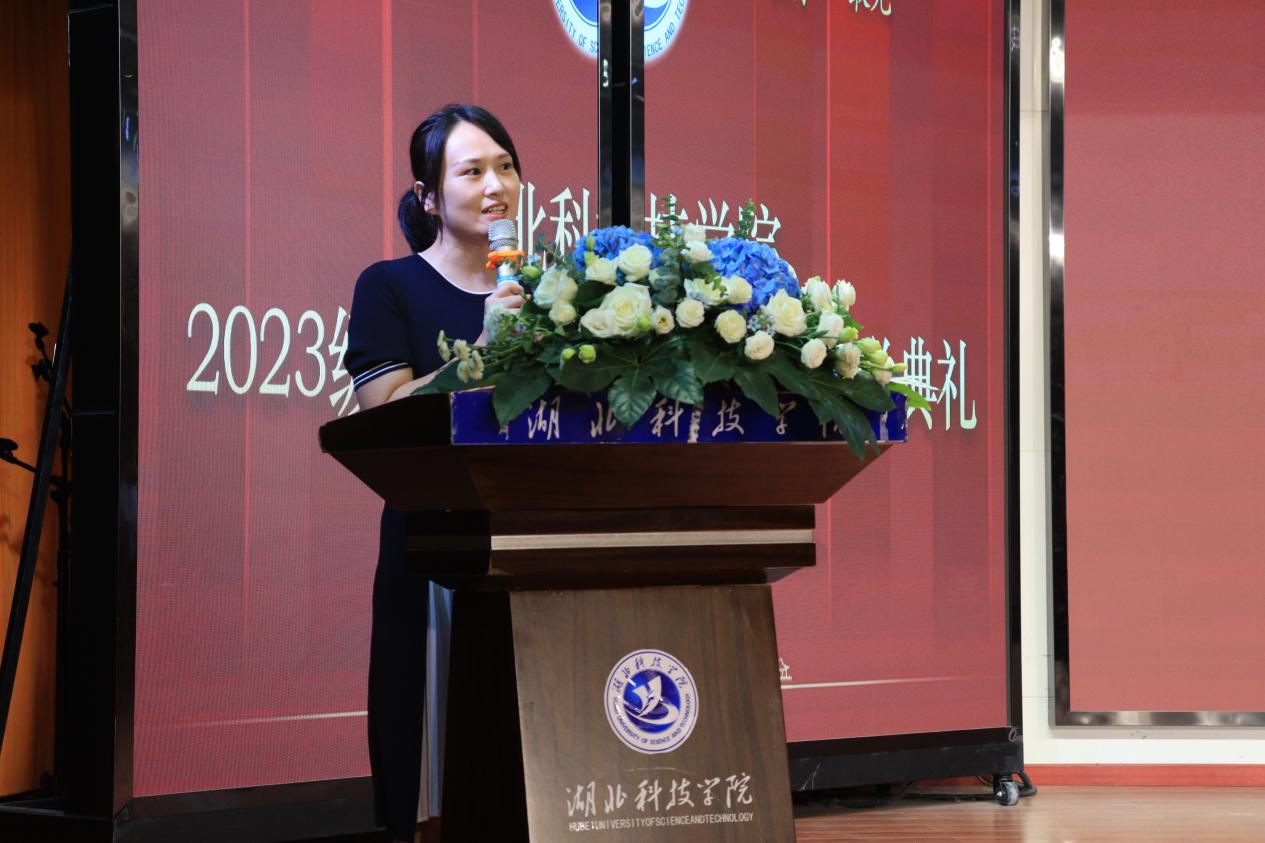 基础医公司吴喆副教授代表全体教师表达对2023级新生的寄语。她指出,医学是最亲近生命的领域,选择了医学,就要用一生的忠诚和热情去对待,并希望充分利用良好的学习环境,学会规划、学会学习、学会沟通、学会感恩,扎实地走好每一步,把青春和才华投入到为人民谋健康的伟大事业中去。
