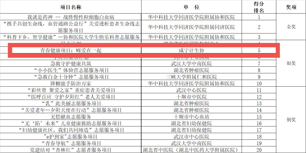 俗话说:“台上一分钟,台下十年功”,能在首届湖北省卫生健康行业青年志愿服务大赛中获得银奖,离不开“WE爱在一起”项目组在八年的青年志愿公益活动中付出的努力与汗水,“WE爱在一起”项目组获得此成就离不开老师及成员辛勤的付出。经过八年的拼搏,项目组的知名度逐渐提高,也呼吁到更多人加入青少年青春健康教育及性教育的行列中,但成就属于过去,未来仍需努力。