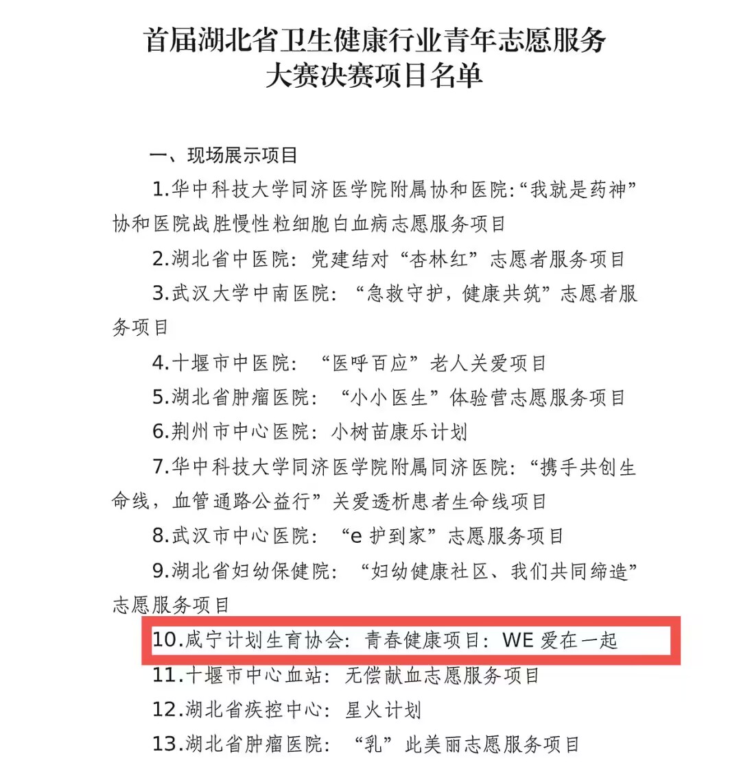 10月18日,以“学习二十大,志愿新征程”为主题的首届湖北省卫生健康行业青年志愿服务项目大赛,在华中科技大学同济医公司附属协和医院车谷院区正式拉开序幕。经过初赛的激烈角逐,“咸宁计划生育协会:青春健康项目:WE爱在一起”项目组脱颖而出,成功登上决赛的舞台。