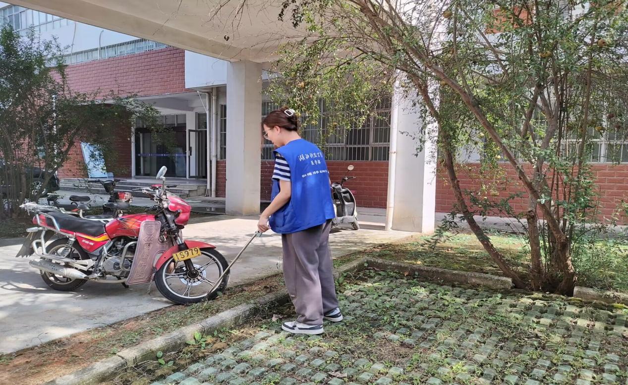 活动进行时,志愿者们分工明确,迅速在分配好的区域就位,全身心投入洁校行动中。志愿者们带着扫把、铁夹等工具清理各类垃圾、烟头、枯枝,随手将垃圾桶盖盖好,不留卫生“死角”和“盲区”,在清洁中逐一检查,态度认真,有条不紊,为环境的美丽挥洒青春的汗水,他们的一次次弯腰、拾起的动作充分践行了志愿服务的精神和理念。