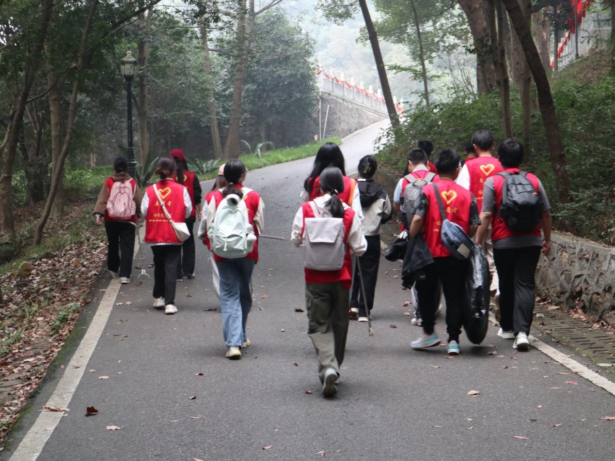 活动开始前,班长张美玲组织分配了清洁工具以及垃圾袋等工具,为登山途中清扫白色垃圾做准备。徒步过程中大家结伴而行,互相帮助,在强身健体的同时,也增进了彼此间的交流,更是让成员们在征途中感受着先烈们顽强的毅力和不屈的意志。