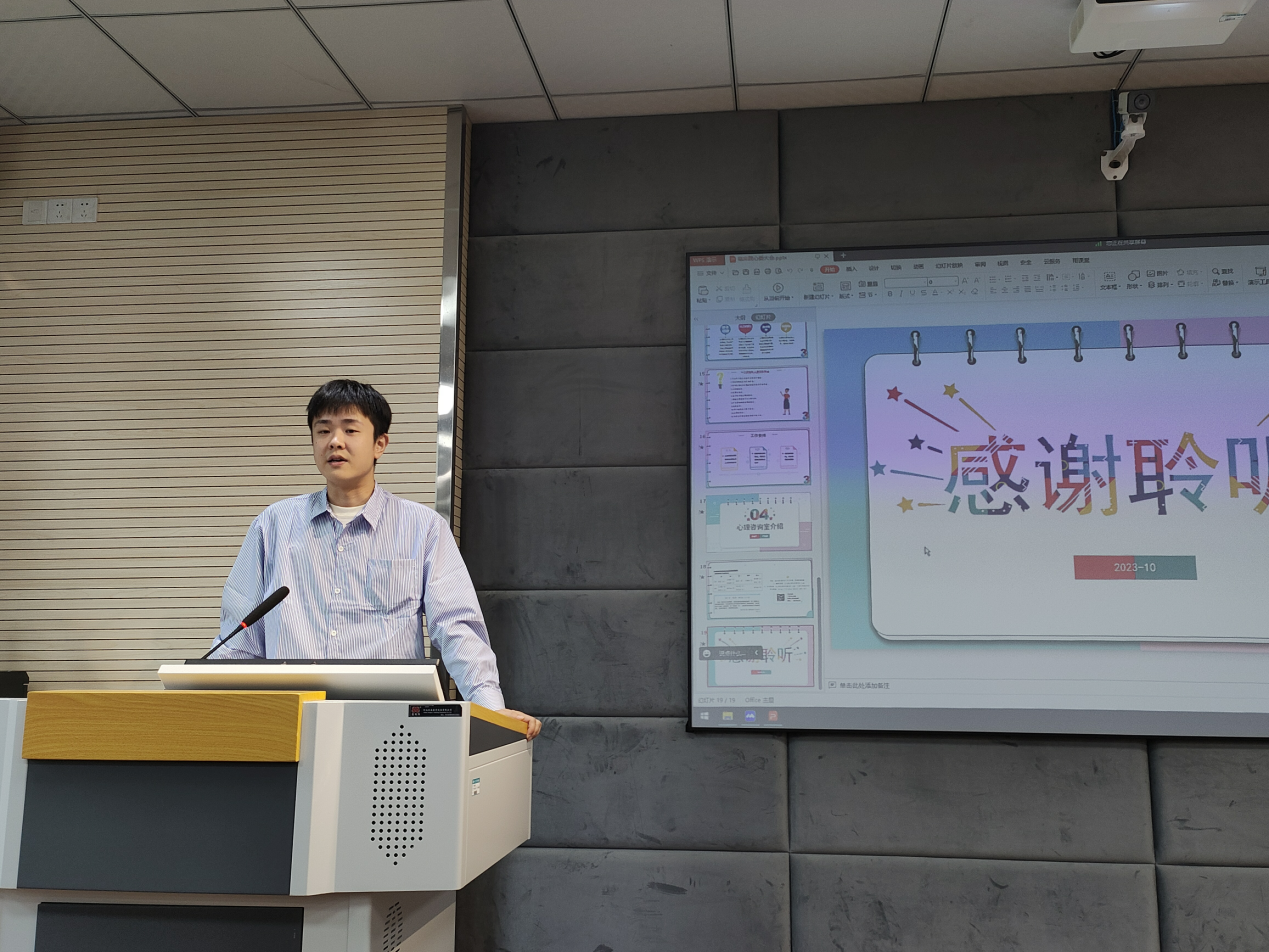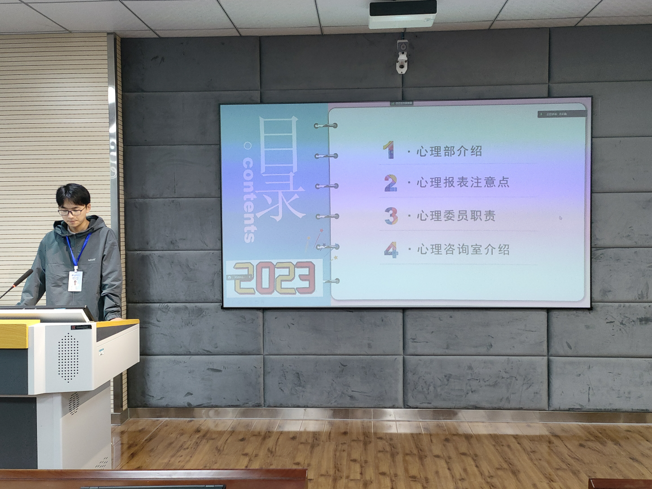 会议伊始,朱长鑫详细介绍了心理部的工作职责,通畅心理部和各班心理委员的对接渠道;其次,强调了心理报表的重要性,规范了报送心理报表的标准;第三,再次明确了心理委员的相关职责,分享了面对心理危机时的处理方法;最后,介绍了心理咨询室的咨询地点、咨询时间及咨询方式,呼吁大家关注心理健康问题,负起责任,认真对待员工心理工作。在互动环节,大家踊跃发言,对工作的具体开展提出相关文体,心理部成员对此做了详细解答。