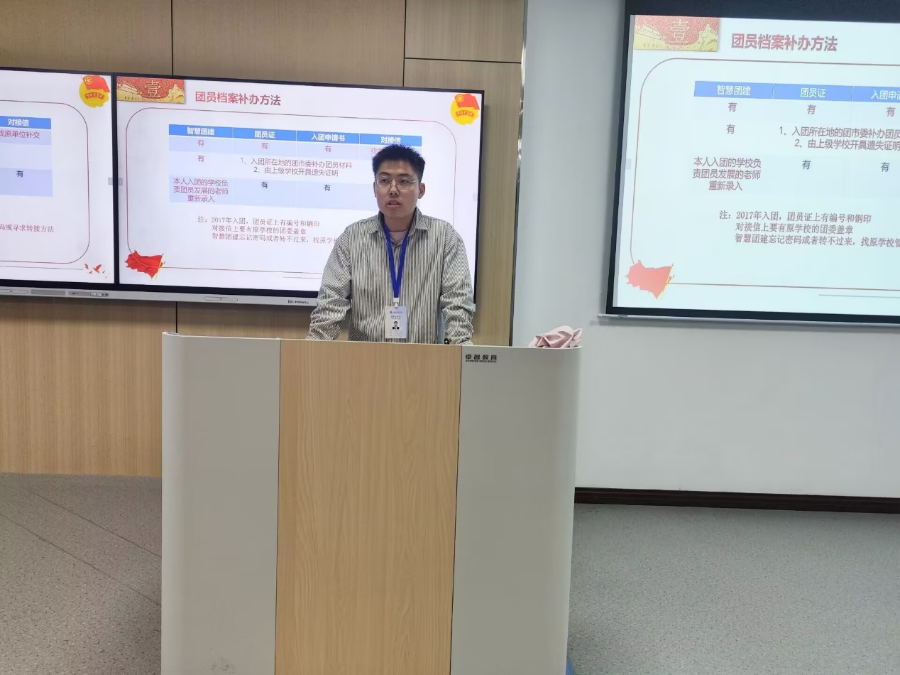 大会第一章,由组织部部长龚一龙上台对组织部工作进行讲解,对团员档案管理、策划及总结、团日活动管理制度等内容进行了详细演示,极大方便了各班团支书与组织部人员的工作对接。