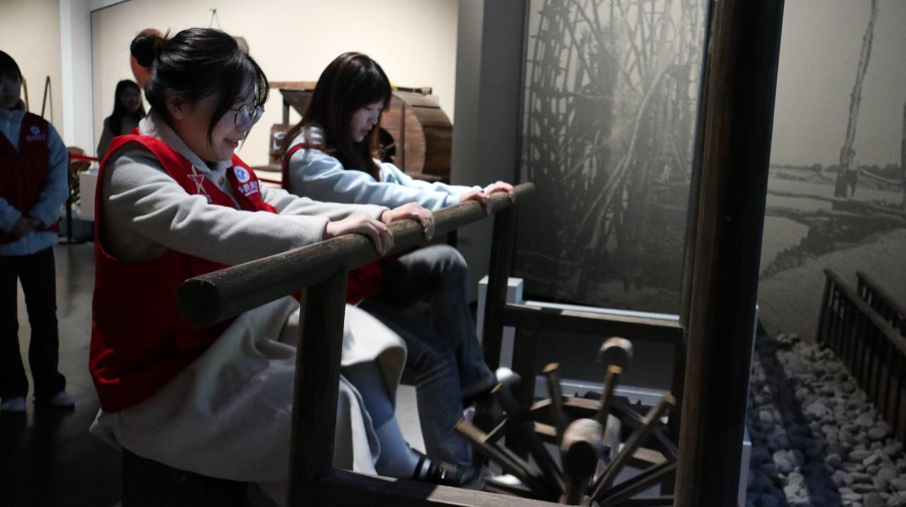 万象博物,文化赓续。文物连接过去,赋能未来,博物馆延续传统文化的生命力,激活社会公众的创造力。首先,青马班一行来到了咸宁市博物馆,整个场馆共六个展厅。其中最令人印象深刻的是《鄂南记忆—咸宁乡土文化展》展厅,咸宁乡土文化,根植于民间,活化于大众,琳琅满目,精彩纷呈。自行参观过程中,学员们认真研读展品介绍,积极体验鄂南农耕灌溉方式。该展厅向学员们展示了生息繁衍在鄂南地区祖辈们的民风民俗,更是呼吁青年们走近色彩斑斓的鄂南乡土文化,让其绽放光彩,永驻人间。