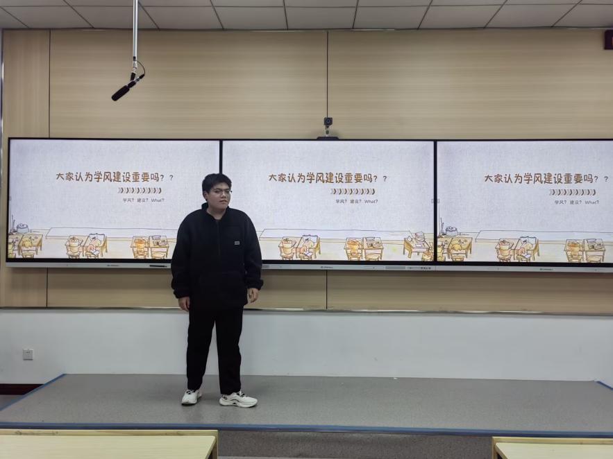 本次班级会议由学习委员主持,他首先介绍什么是学风,强调了学风的重要性,并表示这是班级进步的核心动力。他表示,一个团结的班级,不仅能在学习上形成良性竞争、互帮互助的良好氛围,也能在生活中形成互相理解、互相尊重的和谐关系。同时,他也后期班委成员努力方向进行了明确的阐述,包括完善班级规章制度,丰富班级活动,以及加强班级成员之间的交流和互动。