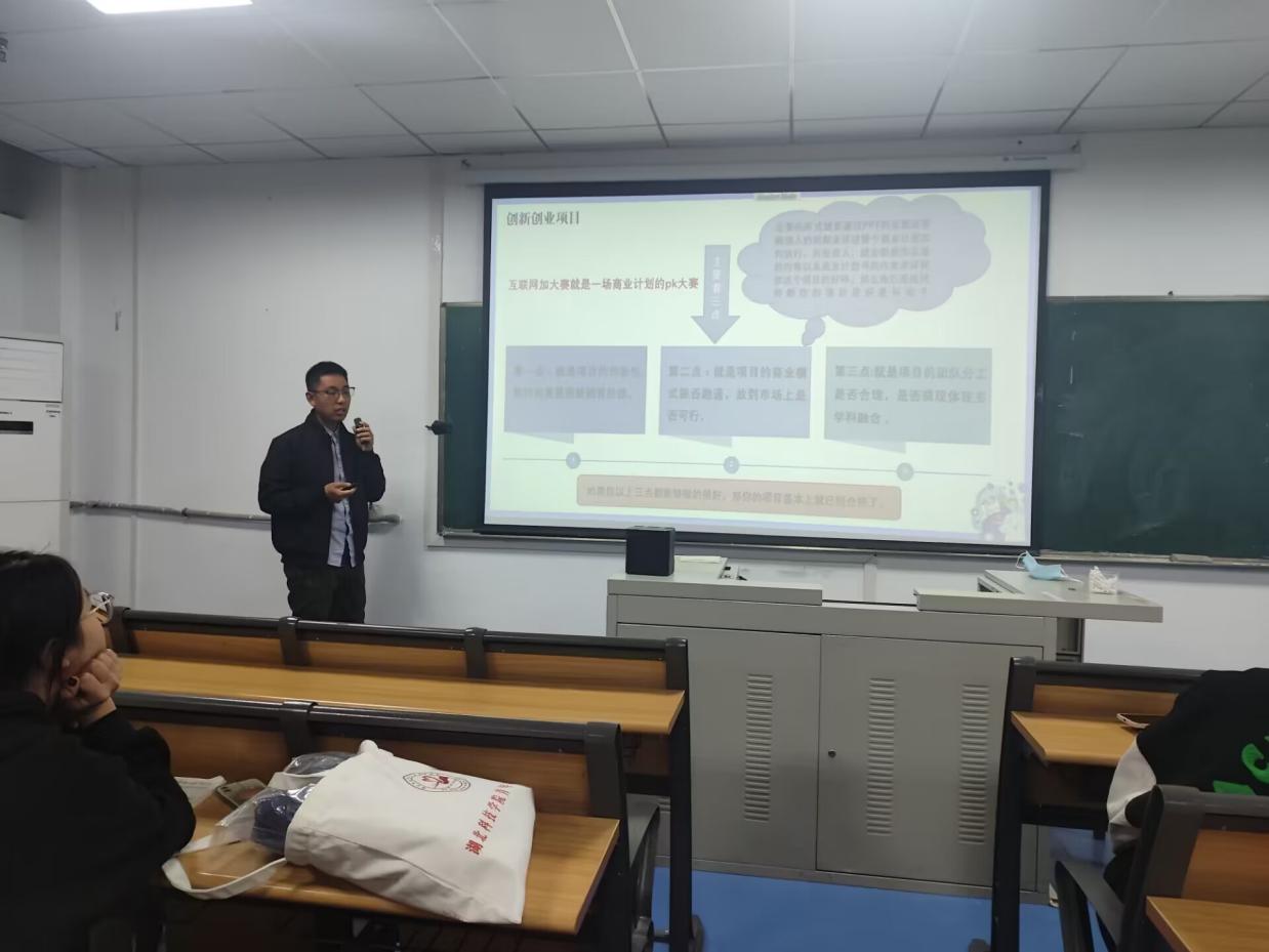 接着,李琨详细为同学们介绍了当下热门的创新创业项目,如互联网+、挑战杯、三创赛等一系列适合当代老员工的创新创业竞赛,仔细分析了这些赛事参赛规则及要点,特别提及了近期处于报名阶段的三创赛,这激起了同学们的参赛兴趣。