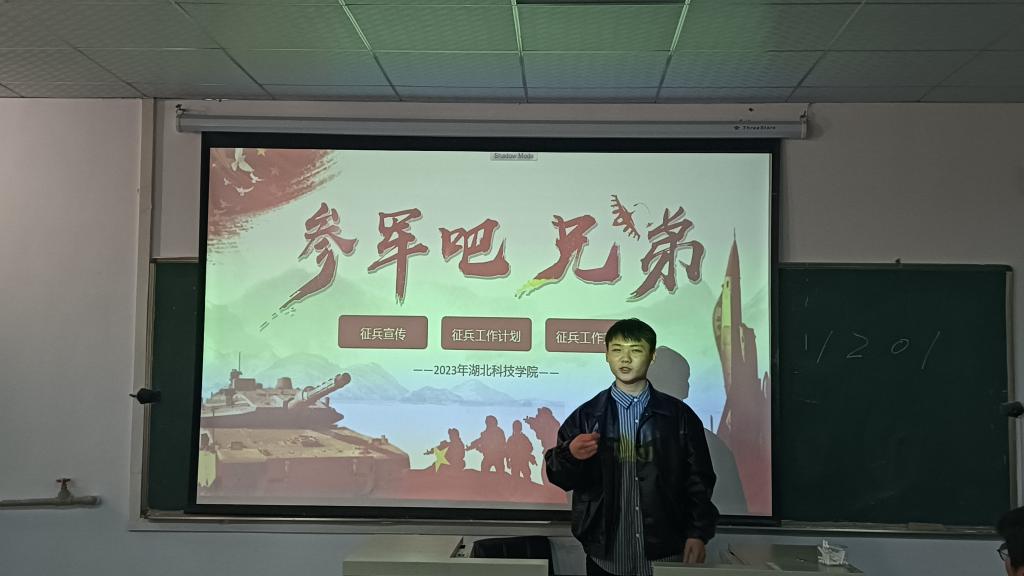 最后,侯志文同学讲解了老员工参军的政策,介绍了老员工参军的流程,以及退伍复学后的各项政策倾斜,与此同时,一一解答了同学们的问题,打消了同学们的后顾之忧,他号召:“作为新时代老员工,理应用知识武装头脑,更应以参军武装体魄,这盛世的安宁也应有我们的守护……”