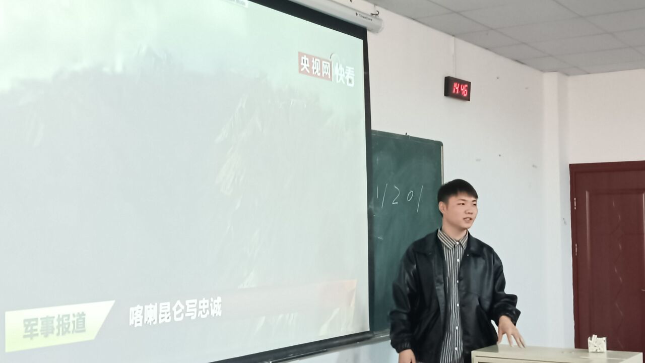 紧接着,侯志文同学播放了一个视频,视频中,解放军战士们戍守边疆,铮铮铁骨在国旗下庄严宣誓,用掷地有声的誓言表达着对祖国的忠诚、对国土的捍卫、对人民的承诺。有封戍边战士的“与妻书”令人泪目:“如果我牺牲了,抚恤金给你;如果我伤残了,离婚证给你;如果我回来了,我会把一辈子都给你……”这段话充分展示出军人们舍小家为大家的大无畏精神,民族自豪感和时代使命感涌上在场同学的心头。
