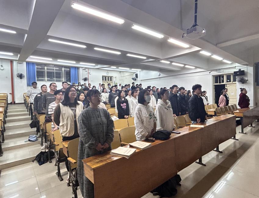 活动伊始,全体起立,奏唱国歌。此次活动由各班班长带领同学学习《中华人民共和国爱国主义教育法》,旨在促进大家对祖国的归属感、认同感,爱国是中华民族精神的核心,更是中国人民和中华民族同心同德、自强不息的精神纽带。
