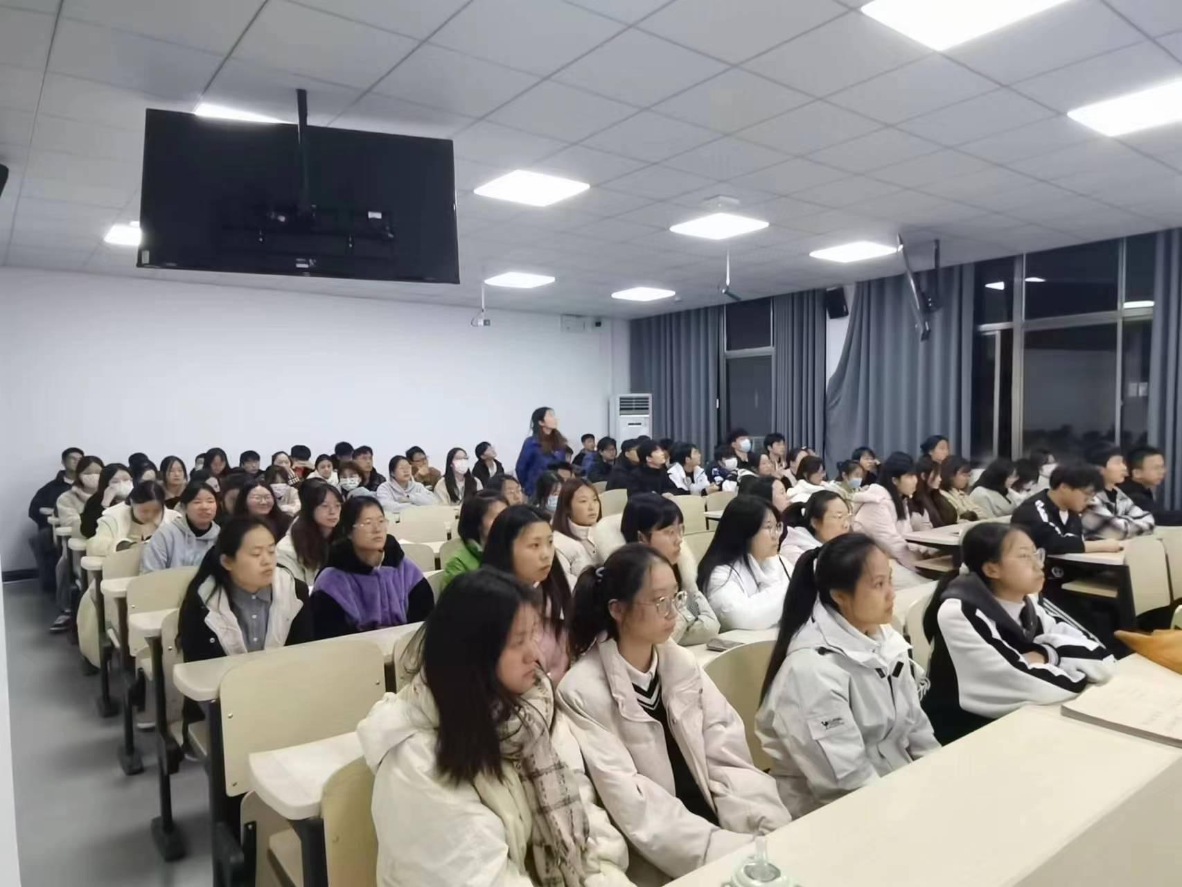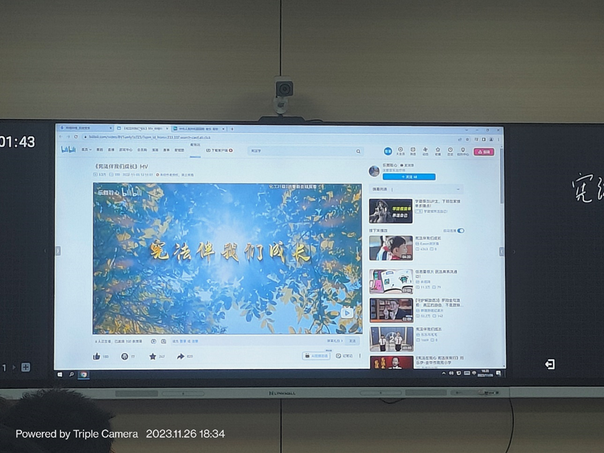 随后,各班主持人组织同学们登录普法网,学唱宪法歌曲《宪法伴我们成长》,这首歌曲以简洁明快的旋律和朗朗上口的歌词,表达了宪法对公民成长的重要性,同学们学唱的热情高涨,甚至有同学能完整唱出,得到了同学们的称赞和掌声。