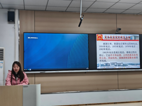 活动伊始,全体同学起立,齐唱国歌。国歌声让每个人心中都充满了对祖国的热爱和对宪法的敬意,也在不断提醒着,宪法是国家的根基,学习宪法是每个公民的责任和义务。