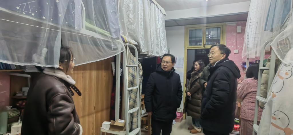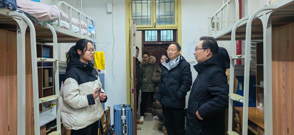 在查寝过程中,领导们叮嘱同学们注意出行安全,始终牢固树立“安全第一”的意识;同时,领导们了解了同学们同上一节思政课情况,通过面对面交流,掌握同学们的思想动态;最后,对于已经开始的新学期课程,领导们希望同学们迅速调整好状态,并强调了线上上课纪律。