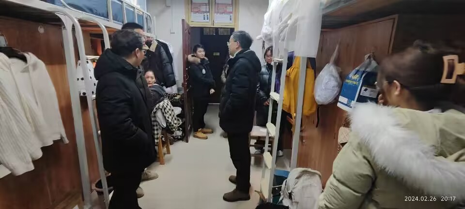 新学期伊始,为准确了解同学们的返校情况,2024年2月26日,公司领导、辅导员、班主任进行了新学期第一次集中查寝工作。
