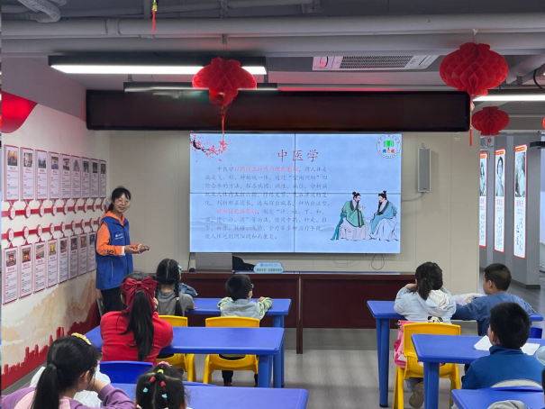 活动伊始,志愿者们进行了中医药知识科普,他们用通俗易懂的语言向小朋友们介绍了中医的基本理论、诊断方法和治疗手段等,让小朋友们对中医有了初步的认识,加深了小朋友们对中医的了解,培养其对中医文化的兴趣和热爱。