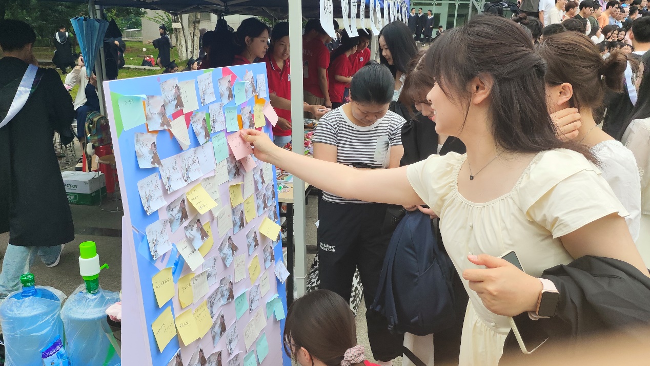 不少毕业生看到许愿墙,激动不已,短短数十分钟,毕业生们留下的便签就贴满了许愿墙,字里行间都是对母校的眷恋;对师长的感恩;对学弟学妹的勉励;对自己未来的期许,真挚的话语和真情的流露牵动着每一个人的心。
