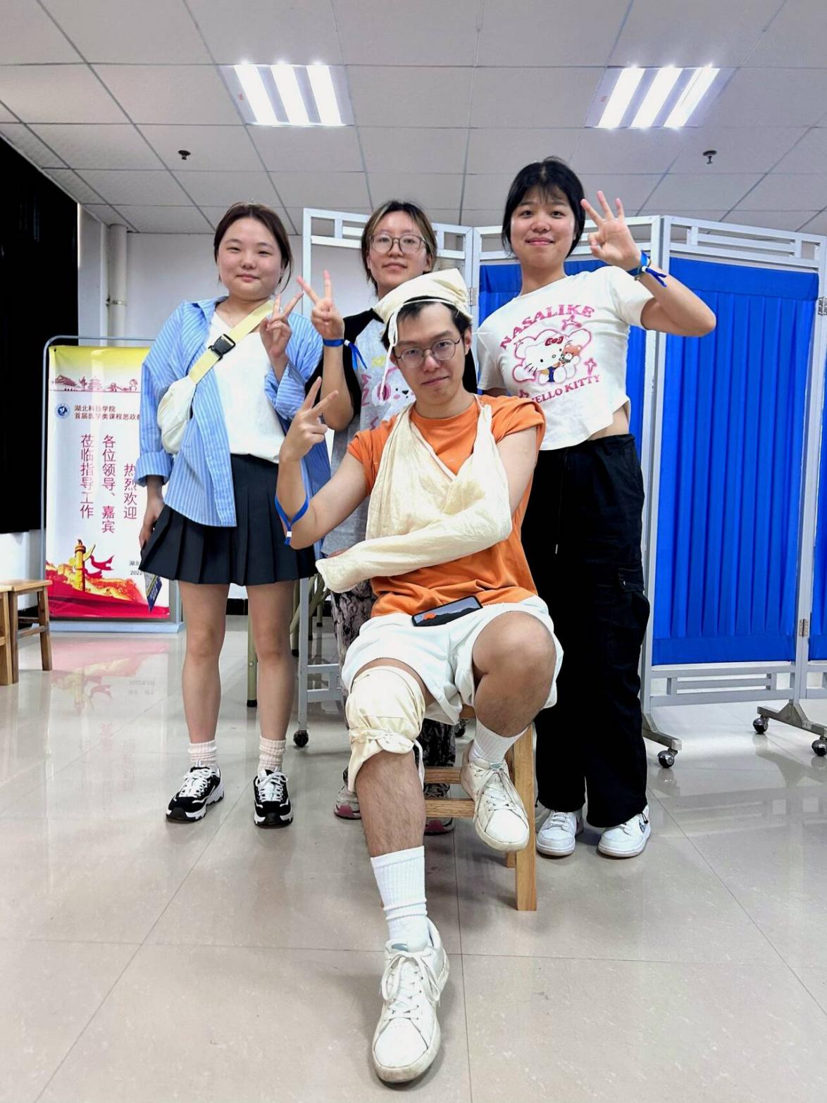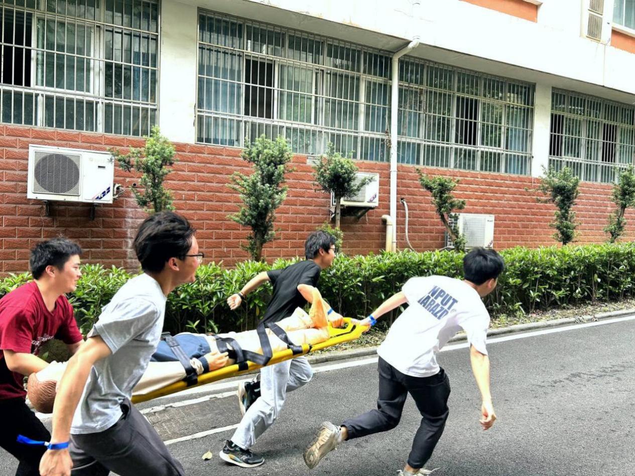 5月12日下午2时30分,刘世杰等老师首先进行了开幕式讲话,强调了“安全第一,比赛第二”。主持人向大家详细地介绍游戏规则,在各组了解比赛规则后,医学组和非医学组的参赛选手领取了对应的卡片,每完成一个比赛项目,工作人员便会在卡片上印一个印章。在人工心肺复苏的环节中,参与者们认真学习了正确的按压位置和力度,以及人工呼吸的技巧,轮流进行模拟操作,由工作人员进行现场指导和纠正,通过实践,提高了大家应对突发状况的应变能力。其中最引人注目的还是火线救援,参赛选手们迅速响应、有序协作,熟练使用抬担架等救援工具,将伤员安全、迅速地转运至安全区域,充分展示了他们在救援技能方面的合作能力。在心灵手巧、心有灵犀、器械缝合、轮流包扎的环节中,他们也同样展示了面对紧急情况的沉着与冷静,每一个步骤都精准而迅速,也深刻感受到急救技能的实用性和紧迫性。在紧急情况下,正确的急救措施往往能够挽救一个人的生命。因此,我们每个人都应该学习并掌握基本的急救技能,以备不时之需。参赛选手完成了一个又一个挑战,不仅提高了他们急救能力,也培养了大家的团队协作精神和安全意识。比赛结束后,工作人员宣布了获奖者名单并为获奖者进行颁奖,随后在领奖过程中,参赛选手表示:“在未来的日子里,我们会将所学的急救技能运用到实际生活中,在面对紧急情况贡献自己的绵薄力量。”