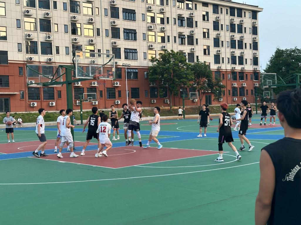 随后出场是23专升本2班联合3班(C组)对战21校本联合(D组)。随着裁判的哨响,C组男篮球员们配合行云流水,队员控球技巧令人赞叹,为球队创造得分机会。D组则凭借精准的投篮紧咬比分,球员连续几个三分球将比赛推向高潮。比赛过程扣人心弦,最终D组取得了本场比赛的胜利。