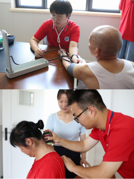 活动现场,团队志愿者化身健康卫士,细致测量血压,并给出针对性的防治与用药建议。与此同时,团队成员巧妙融合中医传统疗法,以活瓷温通罐杯为媒介,结合艾灸与刮痧之精粹,通过刮拭穴位和疏通经络,为肩颈不适的老人带来舒缓与慰藉,展现了中西医学和谐共生的美好图景。