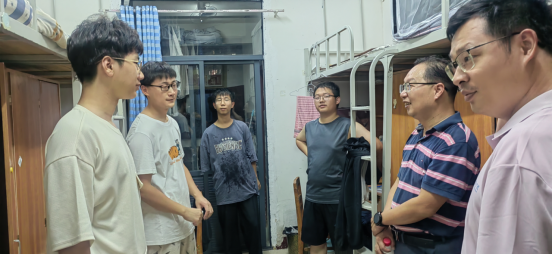 为深入了解新生入校适应情况。9月8日晚,公司党委书记魏旻杰、副经理彭圣威、24级全科班班导师、学工辅导员、班助走进2024级全科医学新生寝室,走访慰问新生,为员工送去关怀与温暖,帮助员工排忧解难。