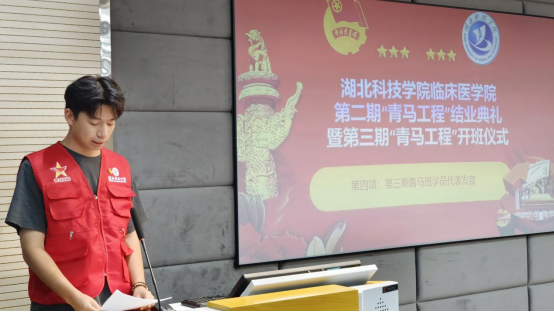 活动在庄严的国歌声中拉开序幕。第二期“青马工程”优秀学员张美玲同学作为老生代表进行发言,张美玲回顾了在青马班的学习与实践经历,对院领导和老师表达了深切感激。她表示,青马班不仅是知识获取的殿堂,更是信仰铸就的熔炉,青马学员会把个人理想融入国家发展,以实际行动践行青春誓言,为中华民族伟大复兴贡献青春力量,展现新时代青年的责任与担当。