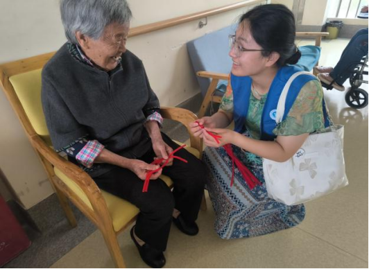 紧接着,扭扭棒中国结手工制作环节开始了。志愿者们配合着工作一对一地指导着老人们操作,耐心地解答他们的疑问,帮助他们克服制作中的小困难。老人们虽然动作稍显缓慢,但在志愿者的鼓励和帮助下,一个个寓意吉祥的中国结逐渐在他们的手中成形。这一过程中,不仅锻炼了老人们的动手能力和思维能力,更激发了他们对生活的热爱和对传统文化的兴趣。