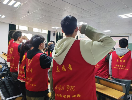 主题党日在庄严的国歌声中拉开序幕,任梦梦老师带领与会同志们一起高举右拳,重温入党誓词,党员同志们坚定的眼神、铿锵有力的誓言,使青马学员们大受触动,在重温入团誓词时,学员们的背影果敢而坚毅。