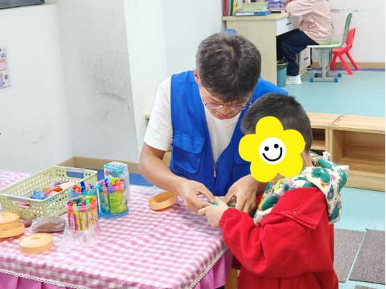 为了给小朋友们一个难忘的下午,志愿者们精心准备了一系列丰富多彩的物品:色彩斑斓的蜡笔、可塑性极强的彩泥、趣味十足的拼图……每一件都承载着志愿者们满满的爱意。在康复中心老师的协助下,志愿者们与小朋友们迅速拉近了距离,他们一起唱歌、画画、捏彩泥、吹气球、拼拼图,教室里充满了欢声笑语,空气中弥漫着幸福的味道。