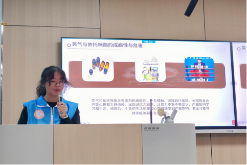 讲座由禁毒服务队成员许一帆主讲。许一帆以笑气和依托咪酯的伪装形式为例,向同学们阐述了毒品的危害性。她结合自己对禁毒知识的学习,深入浅出地讲解了毒品对个人健康、家庭幸福和社会稳定的巨大破坏力,引导员工们深刻认识到珍爱生命、远离毒品的重要性。