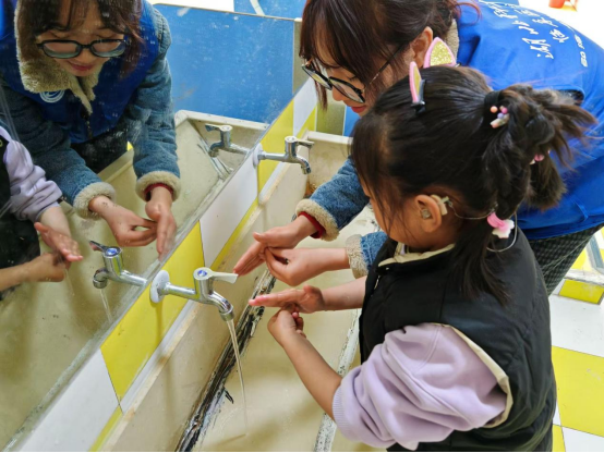 除了游戏环节,志愿者们还结合自身的医学知识,为小朋友们带来了卫生习惯教学。他们耐心地教孩子们如何正确洗手、如何保护耳朵等日常卫生知识,让孩子们在轻松愉快的氛围中学习到了健康生活的秘诀。