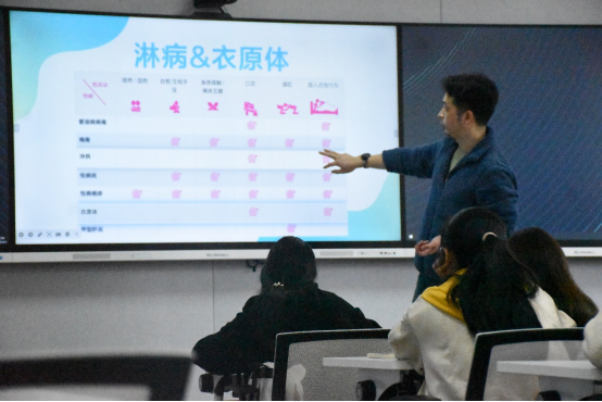 随后,第二位讲师围绕“艾滋病属于性病吗?”、“性病有哪些”及“如何预防各种性病”等主题,与志愿者们进行了深入探讨和互动。志愿者们积极参与,踊跃发言,现场气氛热烈。作为青年志愿者,在了解到相关的知识后,才能更加科学全面地向大众科普相关内容。