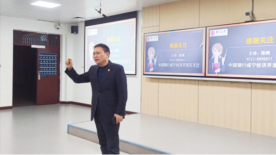 中国银行咸宁市分行的陈爽经理从反假币、防诈骗、慎用贷款、个人征信四个方面,以“理论+案例+互动”的多元形式进行讲解,针对老员工群体特点,重点剖析了网络刷单返利、冒充公检法、校园贷陷阱等高发电信诈骗案例。中国银行咸宁市分行副行长甘士工用通俗易懂的语言总结出了三个三:用好三类工具,即官方客服电话、报警电话、人工智能;保管好三类物品,即身份证、银行卡、手机;避免三种行为,即不随便担保、不随便签字、不随意泄露个人信息。