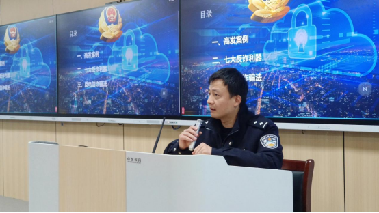 学府、泉都社区的袁艺警官,则以“身边警事”为同学们敲响防诈警钟。他结合近期处置的“奖品折现”“买卖演唱会门票”“线上交友被骗”等案件,拆解了"建立人设-制造焦虑-切断求助"的诈骗底层逻辑,并提出"四不"应对策略:不轻信不明账号、不点击不明链接、不隐瞒被骗经历、不轻视借贷行为。
