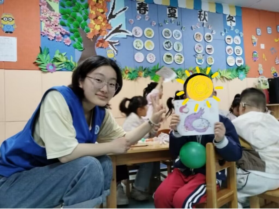 在绘画环节,志愿者们耐心地指导孩子们如何握笔、调色,鼓励他们大胆发挥想象力,将内心的美好世界描绘在画纸上,有的孩子用鲜艳的色彩勾勒出梦幻城堡,有的则描绘出与家人欢乐相聚的场景。志愿者们不时给予肯定与鼓励,孩子们的脸上绽放出自信而快乐的笑容。