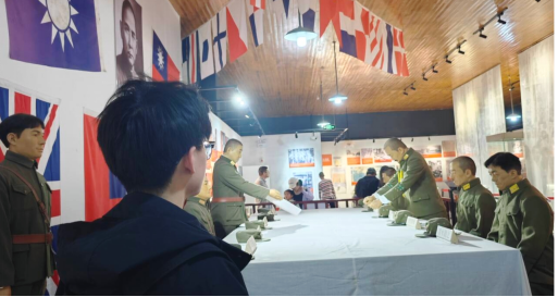 在中山公园受降堂,另一名学员则沉浸在历史的长河中,受降堂作为1945年抗战胜利后华中地区日本投降仪式旧址,承载着厚重的历史记忆。他认真参观每一处陈列,仔细阅读每一份文献,通过文物和文字介绍,重温了那段波澜壮阔的抗战历史。站在受降签字场景复原区前,彭思阳感悟道“先烈们用生命换来的和平,作为新一代青年,必须铭记历史,珍惜当下,继承百折不挠的抗战精神。作为青马班学员,我将以史为鉴,在学习和实践中发扬艰苦奋斗作风,积极服务社会,展现青年责任。”