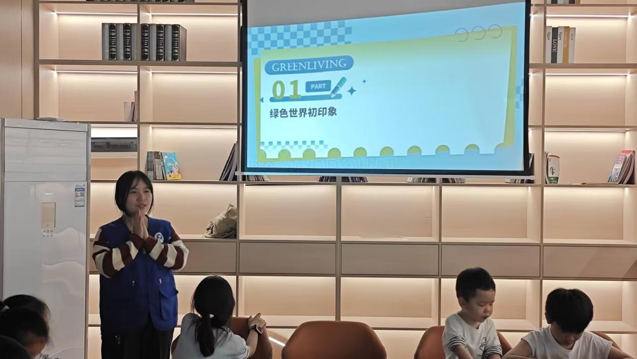 为了让小朋友更好地了解环保知识,社会实践部精心制作了图文并茂的PPT,志愿者程霓以生动的动画、鲜活的图片为引,用童趣十足的语言,深入浅出地讲解垃圾分类小妙招。互动环节中,小朋友们像欢快的小鸟般踊跃参与,面对志愿者程霓提出的环保小问题,孩子们争先恐后地发言,稚嫩的答案里藏着对自然的关切,现场气氛热烈非凡。