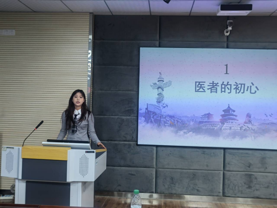 9位医员工共青团员依次登台演讲,他们结合自身经历从不同角度讲述对医学的理解与感悟:有的同学将入团誓词和医员工誓词紧密结合,以身边榜样探寻医员工共青团员的使命和担当;有的同学分享了在医院见习期间,目睹医生们争分夺秒抢救患者的紧张场景,那次经历让他重新认识了白大褂的分量;有的同学描述了带教老师为患者耐心治疗、关怀备至的暖心画面,这些瞬间让他重新理解了“有时去治愈,常常去帮助,总是去安慰”的真谛……这些故事生动展现了医者仁心,引发了在场同学们的强烈共鸣,也让大家对“大医道”有了更深刻的认识。