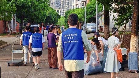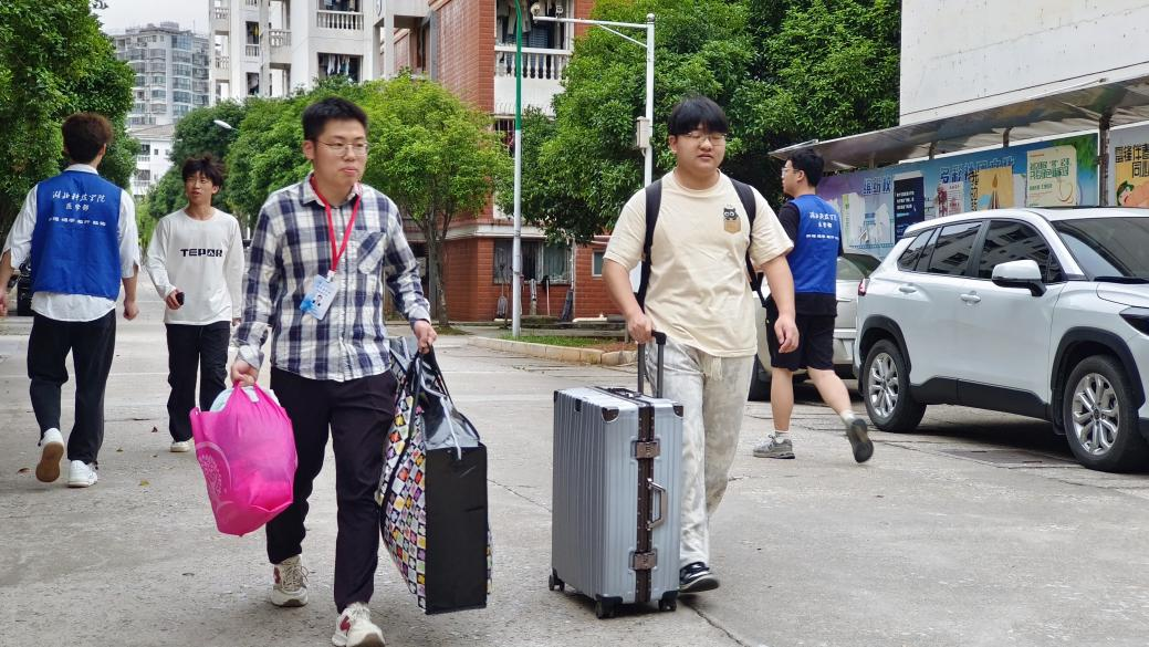 活动期间,团委员工会在每个时间段都安排了值班人员,确保协调工作的高效进行,志愿者们分布在各个点位忙碌穿梭:搬运行李的身影往返于车辆与宿舍之间,汗水浸透后背仍面带微笑;指引路线、提供咨询的志愿者声音亲切,为学长学姐们搭建起贴心的服务桥梁。